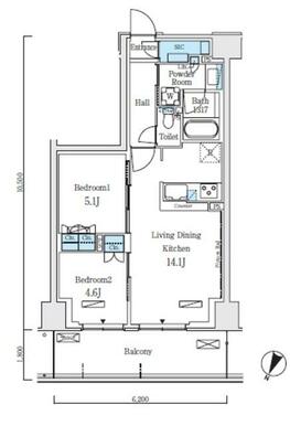 | 間取り | 2LDK | 主要採光面 | 北 |