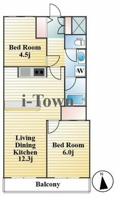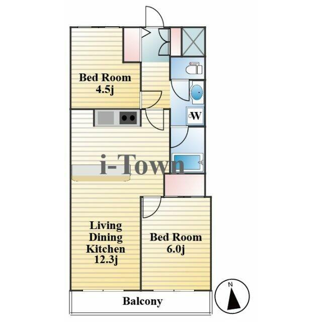 | 間取り | 2LDK(LDK12.6、洋4.5、洋6) | 主要採光面 | 南西 |