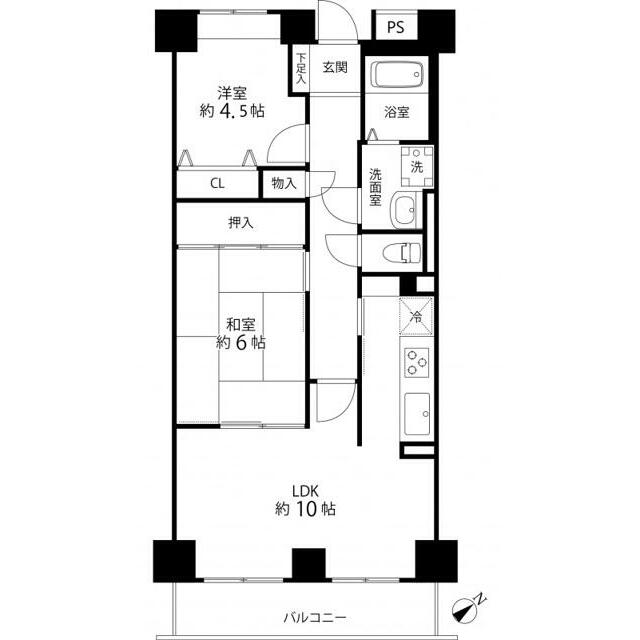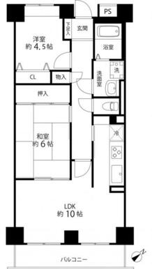 2LDK(LDK10・和室6・洋室4.5) |